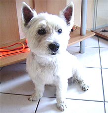 Westie-Mix “Kessy”, vorher ...nachher, mit Familienmitglied